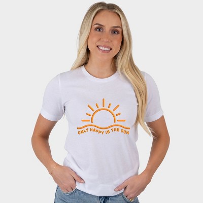 Only Happy In The Sun Puff Print - Women's Short Sleeve Graphic T-Shirt