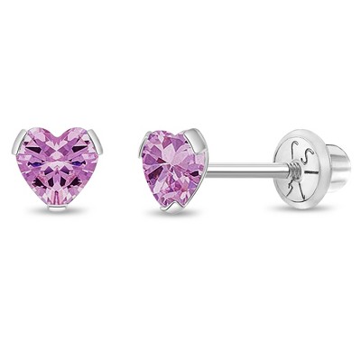 Heart Purple Enamel Crystal White Gold Palladium Plating Hypoallergenic Kids Screwback Stud Earrings Surgical Titanium Posts