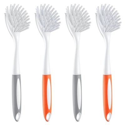 VEVOR Dish Brush, 4 Pack Kitchen Scrub Brushes with PP Handle, Dish Cleaning Brushes with Curved Bristles, 2 Gray + 2 Orange