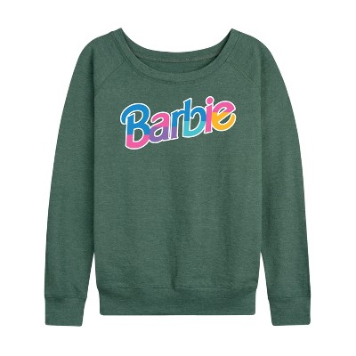 Women's - Barbie - Colorful Logo Lightweight French Terry Wide Neck Long Sleeve Graphic Shirt