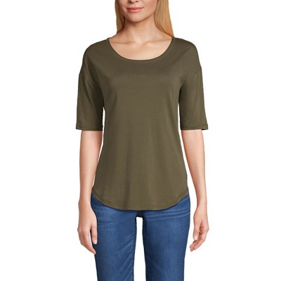 Lands' End Women's Supima Micro Modal Elbow Sleeve Balletneck Curved Hem Top