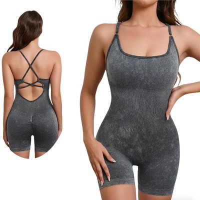 Womens Workout Rompers Athletic Running Onesie One Piece Exercise Jumpsuits Gym Yoga Outfits