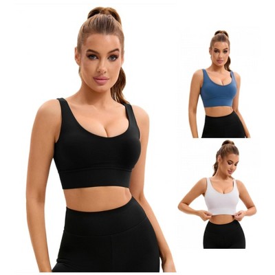 Anna-Kaci Active Women's Ribbed Scoop Neck Sports Bra with Wide Straps
