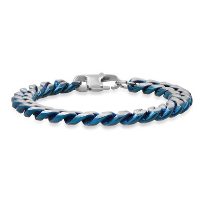 Steeltime Men's two tone stainless steel and blue ip cuban link chain bracelet