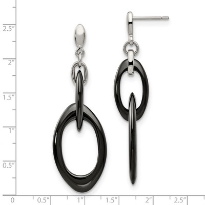 Chisel Stainless Steel Polished with Black Ceramic Dangle Earrings