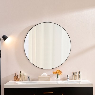 FONTOI Bathroom Vanity Mirrors, Circular Mirror, Metal Framed Mirror, Dressing Mirror for Bathroom Living Room Bedroom, Black, 27.95"*0.98"*27.95"