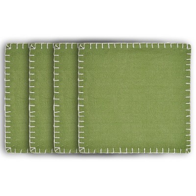 HomeRoots 15" Set of Four Natural And Olive Green Embroidered Edge Cotton Square Placemats