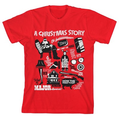 Bioworld A Christmas Story Random Scattered Icons Youth Red Graphic Tee