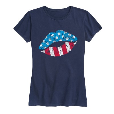 Women's - Instant Message - USA Flag Lip Print Short Sleeve Graphic T-Shirt