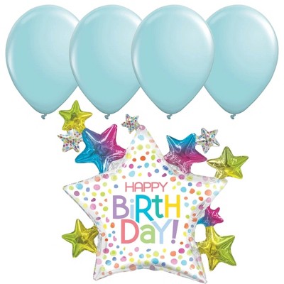 LoonBalloon 14 Inch Birthday Theme Minishape Stick Balloons (16 Pack)- Pre-Inflated
