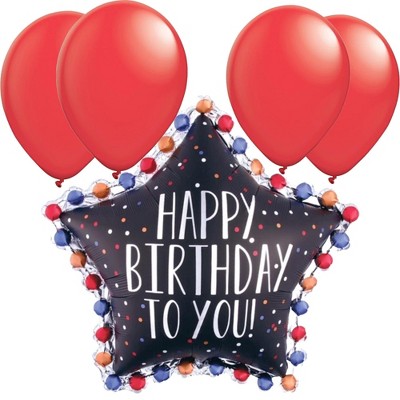 LoonBalloon 37 Inch Star-Shaped "Happy Birthday" Balloon with 4 latex balloons - Festive & Unique