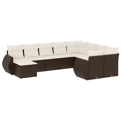 vidaXL Patio Sofa Set with Cushions Outdoor Furniture 10 Piece Poly Rattan