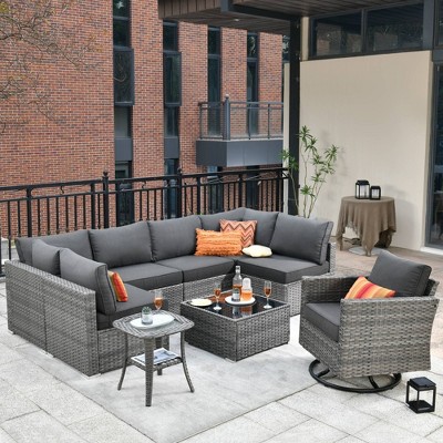 Ovios Venice 8pc Wicker Outdoor Patio Furniture Set Conversation Sofa Sectional with Swivel Chairs and Cushions