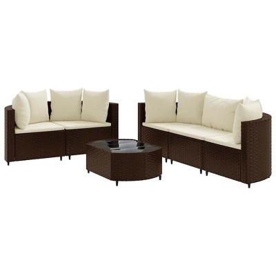 vidaXL Patio Lounge Set Outdoor Sectional Sofa Set Table Poly Rattan Brown