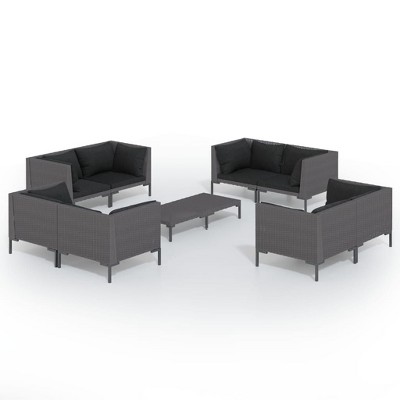 vidaXL Patio Lounge Set Outdoor Sectional Sofa Set Table Poly Rattan Dark Grey