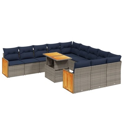 vidaXL 11 Piece Patio Sofa Set with Cushions Poly Rattan