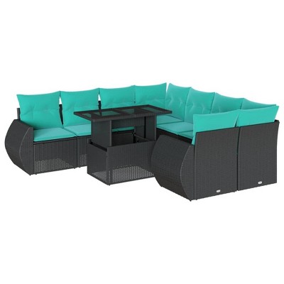 vidaXL 9 Piece Patio Sofa Set with Cushions Black Poly Rattan - Black and Blue