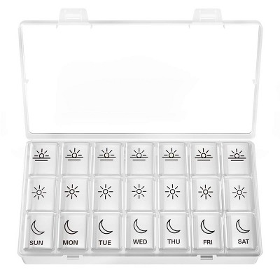 BUG HULL Weekly Pill Organizer 3X a Day, 7 Day Medicine Pill Organizer, 3 Times a Day, Travel Pill Case, Container for Vitamins, Supplements, Black