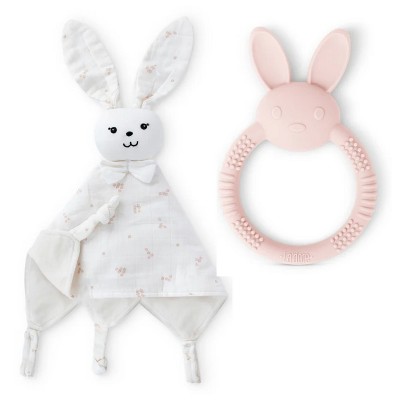 La’dore Bunny Snuggle Blanket & Silicone Teether Set – Soft Baby Comfort Teether Toy for Newborns, Sensory Development & Teething Relief