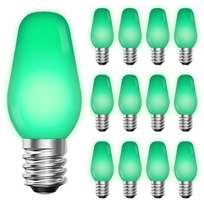 Luxrite C7 LED Green Replacement Light Bulbs, String Lights, 0.5W, Shatterproof Colored Candelabra Bulb, Enclosed Fixture Rated E12 Base 12 Pack