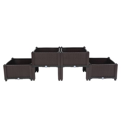 Slickblue 4Pcs Free Splicing Planting Box, Modular Garden Planter, Rattan Style, Brown, 16.93x15.75x15.75in