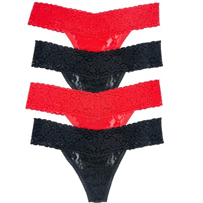 Felina Stretchy Lace Low Rise Thong - Sexy Underwear for Women, Thongs for Women, Seamless Panties for Women (4-Pack)