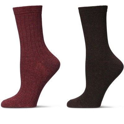 Memoi Women's 2 Pair Ribbed Flat Knit Wool Blend Crew Socks