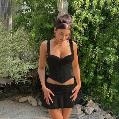 Women's Lace Corset Style Top Adjustable Strap Bustier Mesh Panel Slim Fit Going Out Blouse