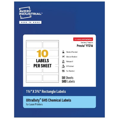 Avery UltraDuty GHS Labels, Waterproof, 1.5 X 3.75 Inch Rectangle Printable Labels, for Use with Laser Printers