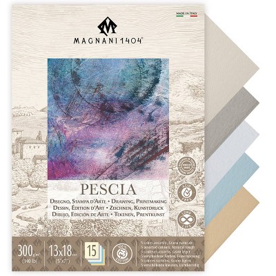 Magnani 1404 Pescia Drawing and Printmaking Paper Pad for Artists, 5x7", 15 Sheets, Assorted Colors, 140 lb (300gsm), Acid-Free 100% Cotton Paper for