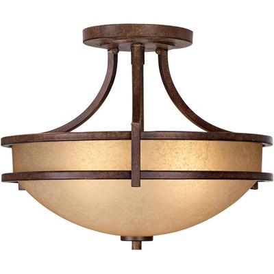 Franklin Iron Works Rustic Farmhouse Ceiling Light Semi Flush Mount Fixture Bronze 18" Wide Cream Scavo Glass Bowl Bedroom Kitchen