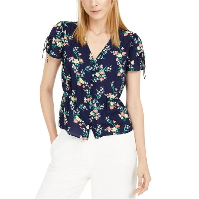 Vince Camuto Womens Tie-Front Floral Button Down Blouse