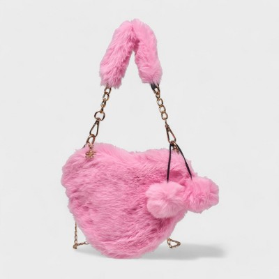 Willow & Ruby Girls Lilac Plush Fuzzy Heart Bag - Adorable Soft Faux Fur Shoulder Bag with Chain Strap and Pom-Poms, Perfect for Kids & Tweens, Purple