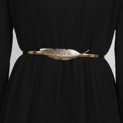 Alilang Women's Metal Leaf Buckle Belt with Slim Adjustable Band and Textured Design 28.5x0.4in