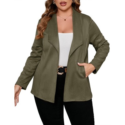 Plus Size Women's Suede Blazer - Long Sleeve Notched Lapel Button Front Jacket 5X