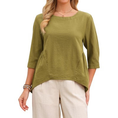 INSPIRE CHIC Women's Crew Neck Half Sleeve Dressy Casual Work Tunic Blouse