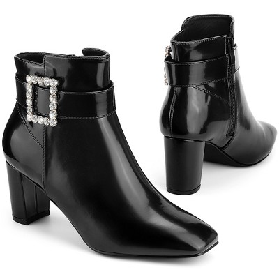 Allegra K Women's Pointed Toe Buckle Decor Heel Ankle Booties
