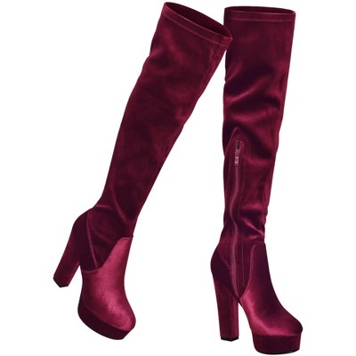 Perphy Women's Stone Pattern Block Heels Over the Knee Platform Boots