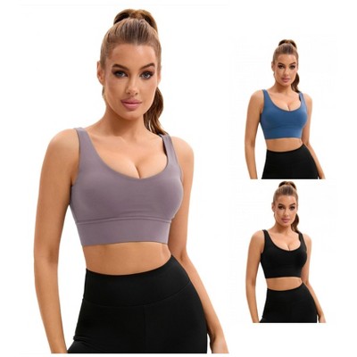 Allegra K Women's Workout Fitness Longline Wireless Padded Sports Bras Multicolored