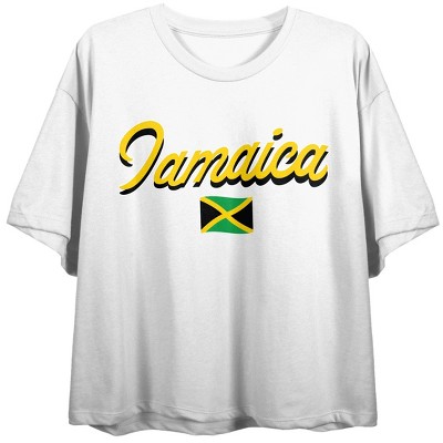 Jamaica Flag Crew Neck Short Sleeve Women's White Crop Top