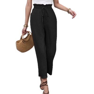 Womens Pants Tie Waist Elastic Band Office Trousers Tapered Pants with Pockets