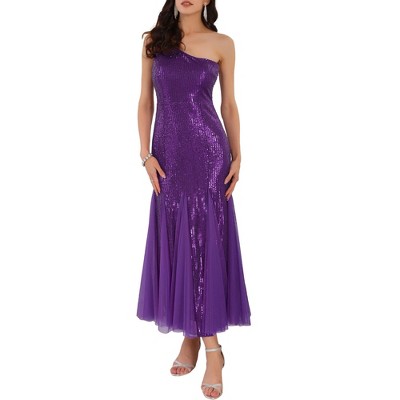 INSPIRE CHIC Women's Sequin Maxi One Shoulder Mermaid Prom Evening Wedding Cocktail Dress