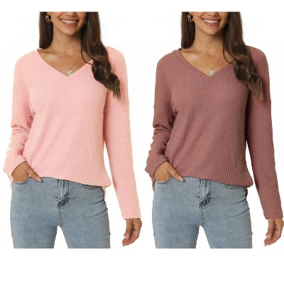 Allegra K Women's Tweed Zipper Back Long Sleeve Crew Neck Elegant Basic Blouse