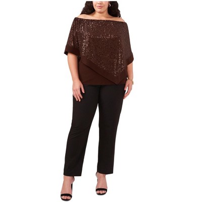 MSK Womens Cape Sequin Triangle Top Blouse
