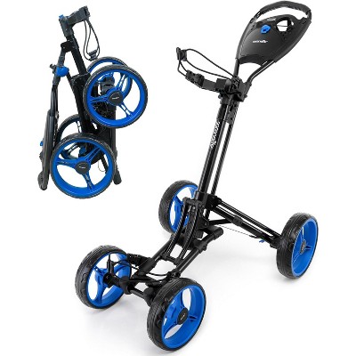 SereneLife 4-Wheel Golf Push Cart – New Deluxe AI Frame Trolley, Upper & Lower Brackets with Elastic Strap