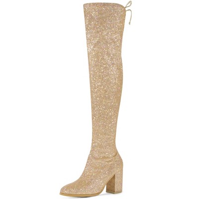 Allegra K Women's Winter Pointed Toe Chunky Heel Knee High Dress Boots