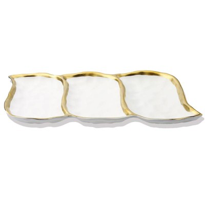 Classic Touch White Porcelain Relish Dish with Gold Rim - 14.5"L x 7"W x 1.25"H