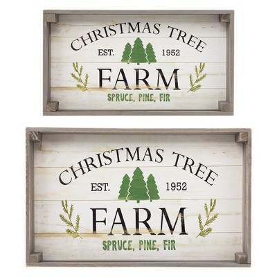 Northlight Set of 2 Gray and White Farm Fresh Christmas Trees Wooden Tray Hanging Signs 21"