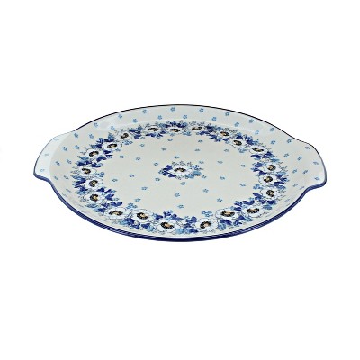 Blue Rose Polish Pottery 151 Ceramika Artystyczna Round Serving Tray with Handles
