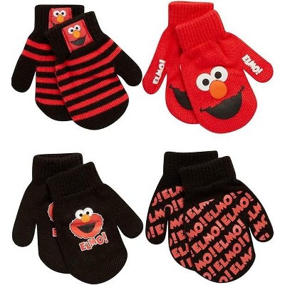 Sesame Street Elmo 4 pair Winter Mittens Set, Toddlers Boys Ages 2-4
